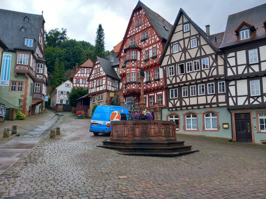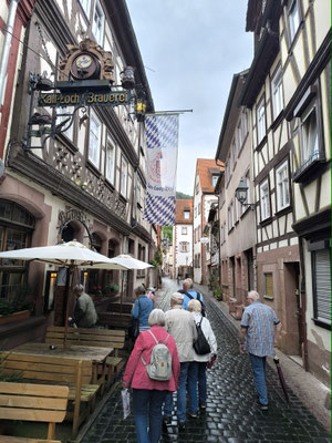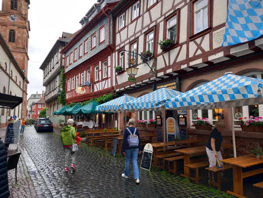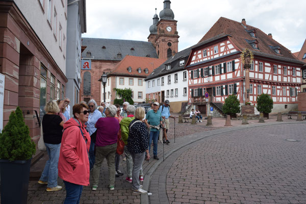 Die Bayern Radtour machte heute in Miltenberg Station, und so konnten wir die Stadt nicht weiter erkunden. Im Städtchen Amorbach warteten zwei Stadtführerinnen auf uns, die über die Geschichte von Amorbach berichteten. Die Entwicklung der Stadt wurde weitestgehend von den Mönchen des Benediktinerklosters und des Fürstenhausses zu Leinigen geprägt.